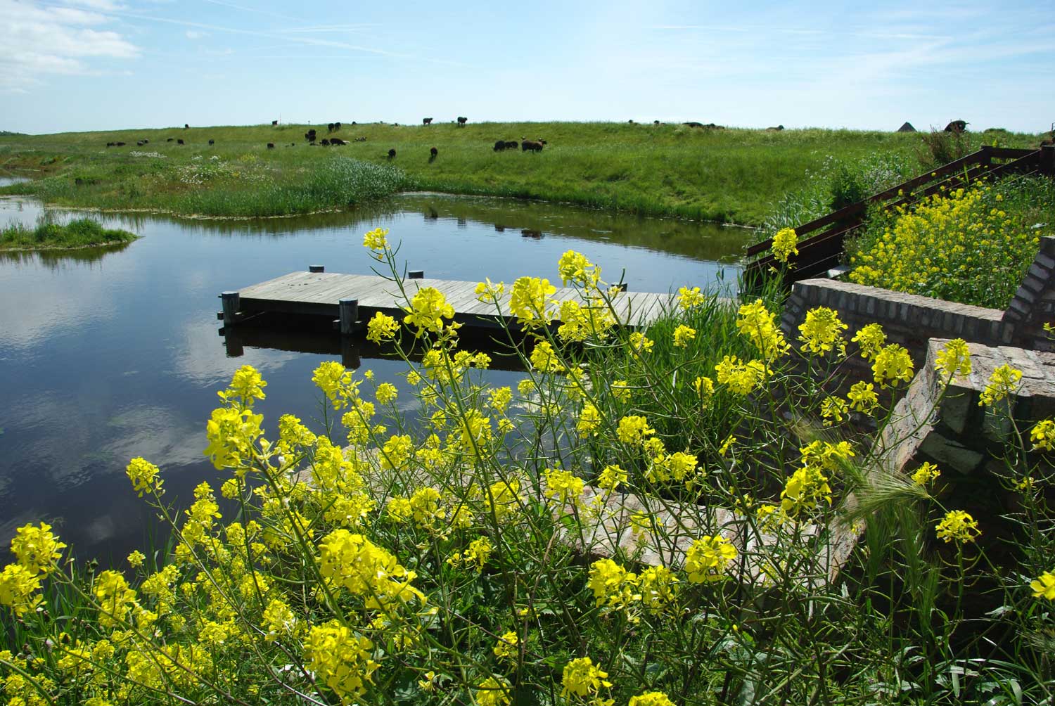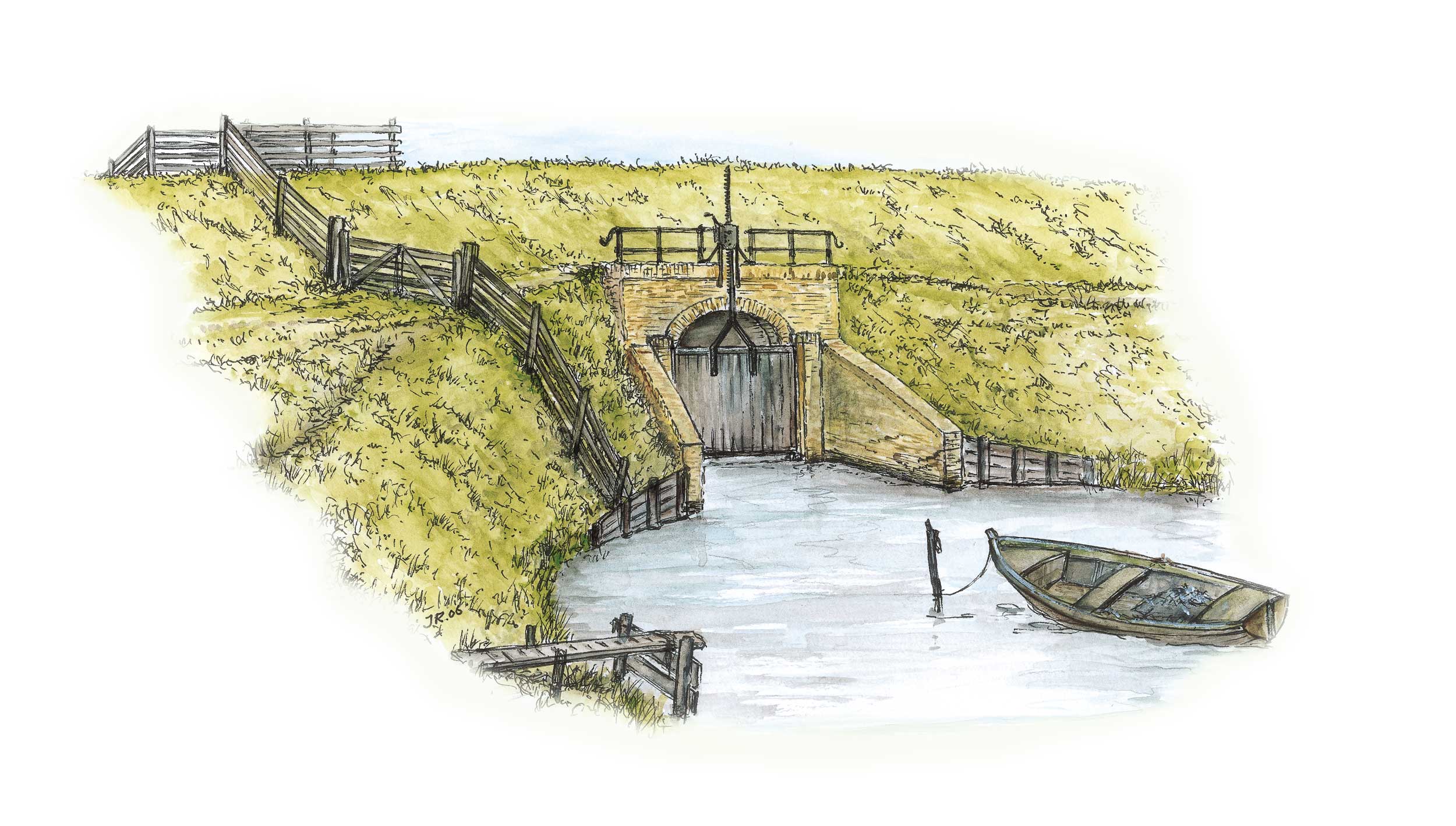 De polders rond Den Hoorn hadden soms te kampen met wateroverlast ten gevolge van hevige regenval en incidenteel ook door dijkdoorbraken. Het water moest dan snel worden afgevoerd. Destijds verliep dat via kleine slootjes en kreken. Tijdens eb kon men op het laagste punt bij de sluis het water door de sluis naar buiten laten stromen, het zogenoemde spuien. Tegenwoordig bestaat er een stelsel van brede sloten dat het water afvoert naar een gemaal langs de Deltadijk (de waddendijk). Het gemaal pompt ook bij hoogwater water door de dijk het wad op.